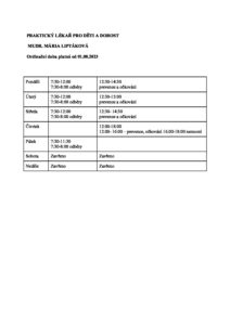 PRAKTICKÝ LÉKAŘ PRO DĚTI A DOROST Volary ordinační hodiny