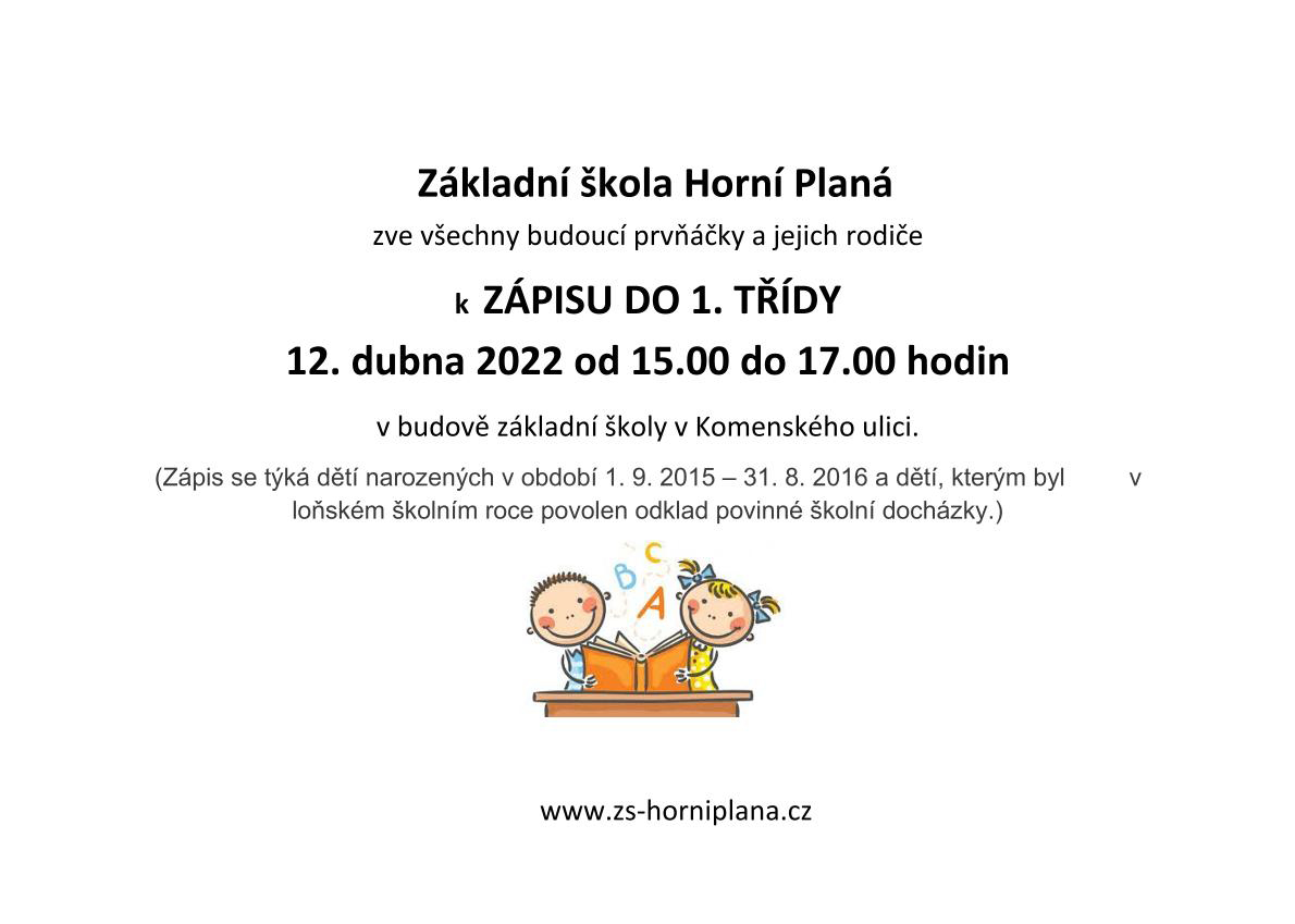• Zápis do 1. třídy ZŠ Horní Planá